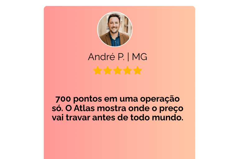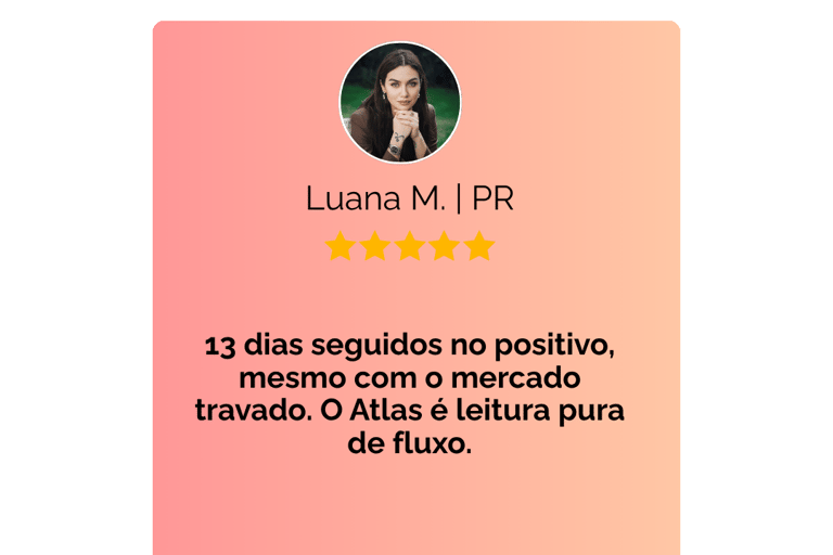Foram anos de tentativa e erro. Até que parei de correr atrás de promessas e comecei a estudar como os grandes realmente movimentam o dinheiro. Nasceu o Atlas — leitura real, sem achismo e sem emoção.